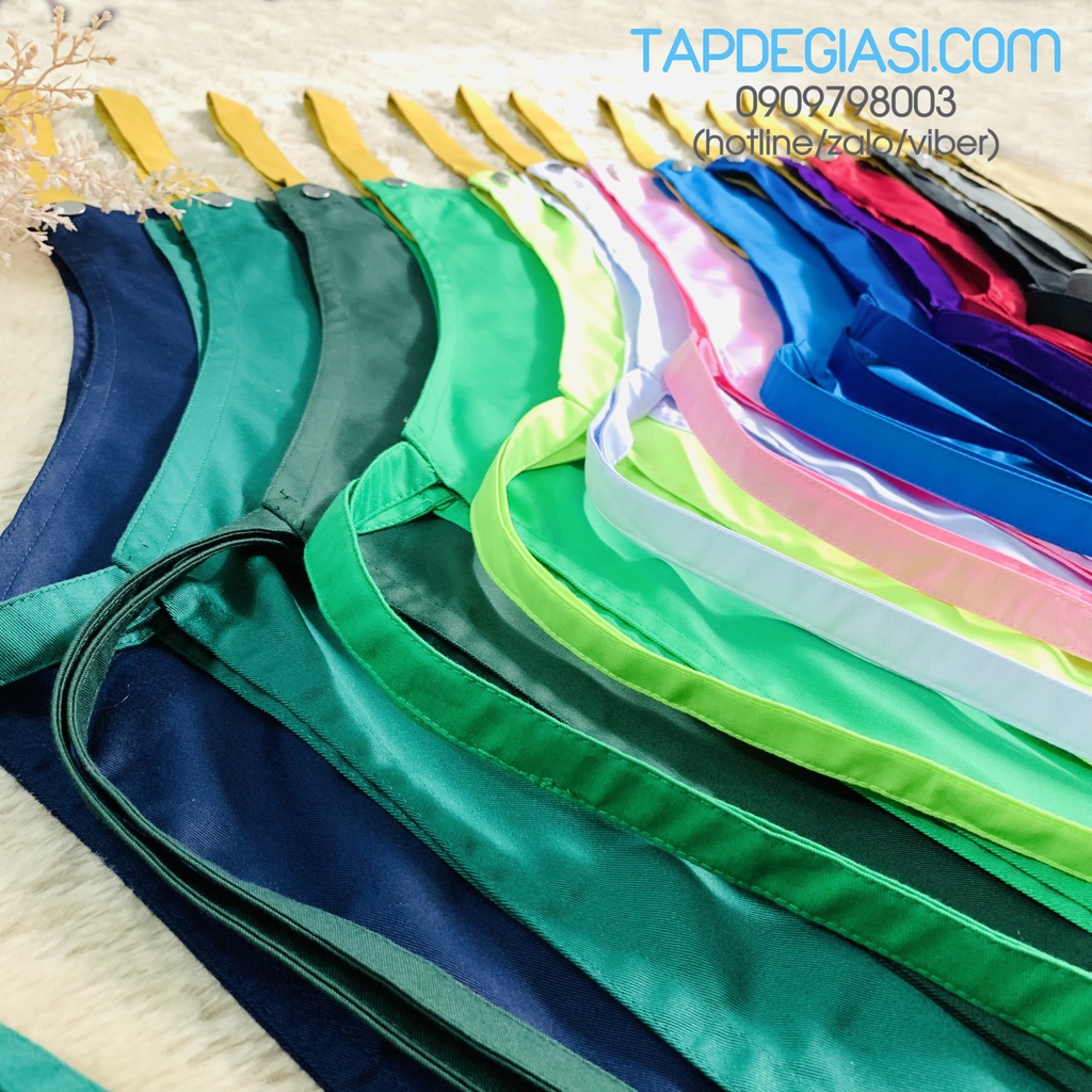 Tạp dề yếm trơn chưa in logo, dây đeo cổ có thiết kế theo phong cách mới với 3 nút bấm có thể tăng giảm độ dài