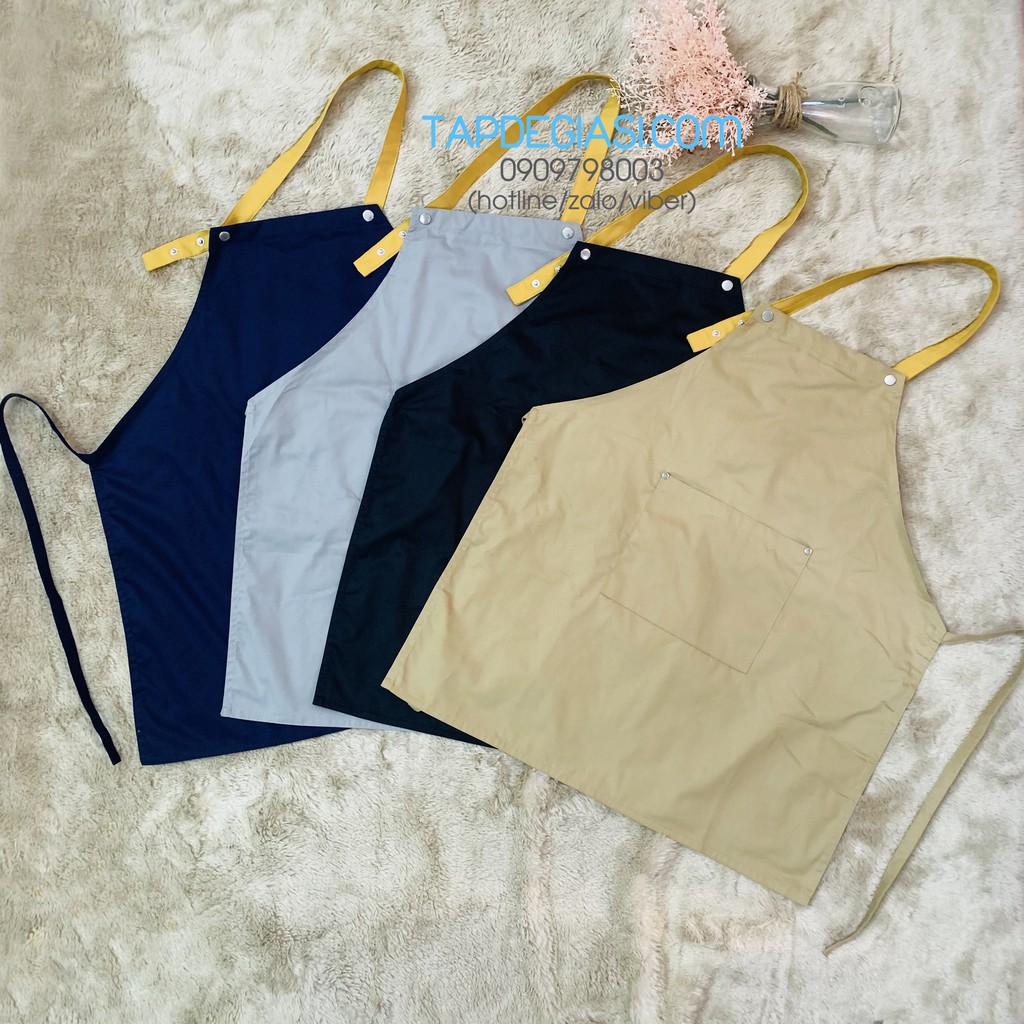 Tạp dề yếm pha chế Nam nữ dành cho phục vụ vải kaki cotton cao cấp 3 nút bấm