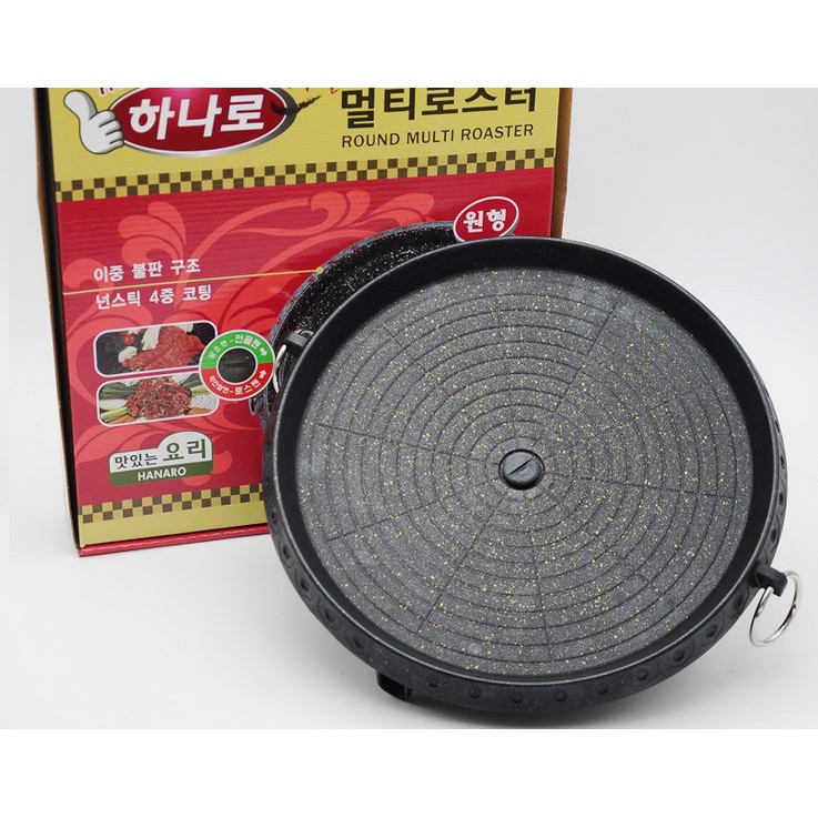 Chảo đá nướng thịt kiểu Hàn Quốc là chảo chuẩn để làm món ăn nổi tiếng này của Hàn Quốc. Chảo có độ nóng cao, độ chống dính tốt và đảm bảo cho bạn một bữa ăn cải thiện gia đình tuyệt vời. Chảo được làm từ nhiều lớp, trong đó có lớp phủ bạc để diệt khuẩn tối đa và lớp phủ bằng đá hoa cương để mang lại độ ngon cho thức ăn (như nướng trên đá nóng).