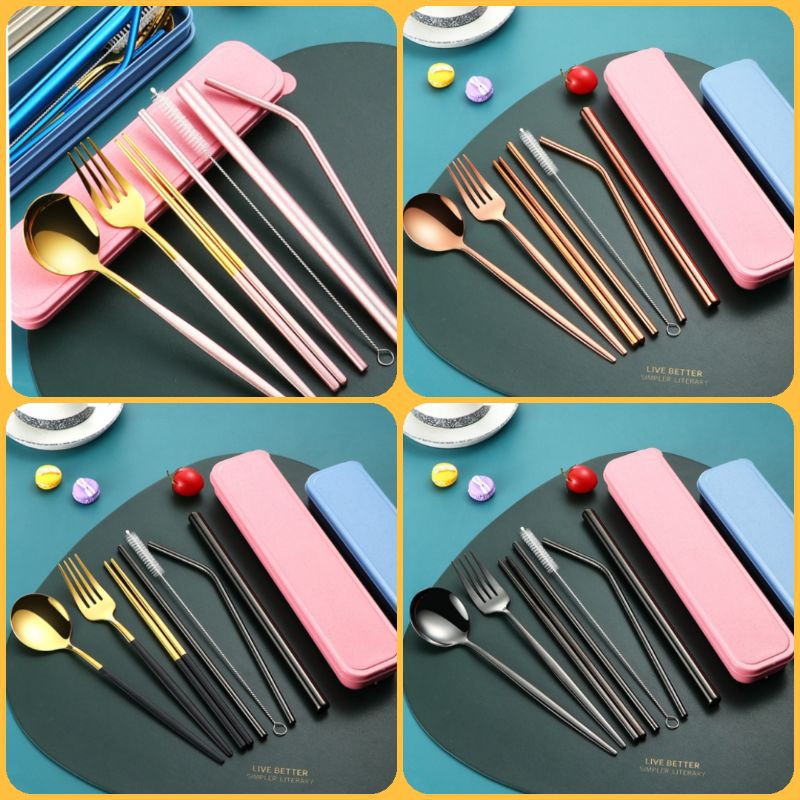 Nhà cửa & Đời sống > Bộ đồ bàn ăn > Bộ dao kéo || Set 7 món muỗng đũa nĩa ống hút bằng thép không gỉ 304 cao cấpCòn hàng