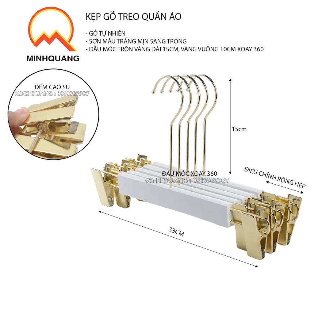 kẹp quần áo, kẹp chân váy, kẹp quần áo bằng gỗ màu trắng đầu kẹp vàng• gỗ tự nhiên thân gỗ dày 1.2cm