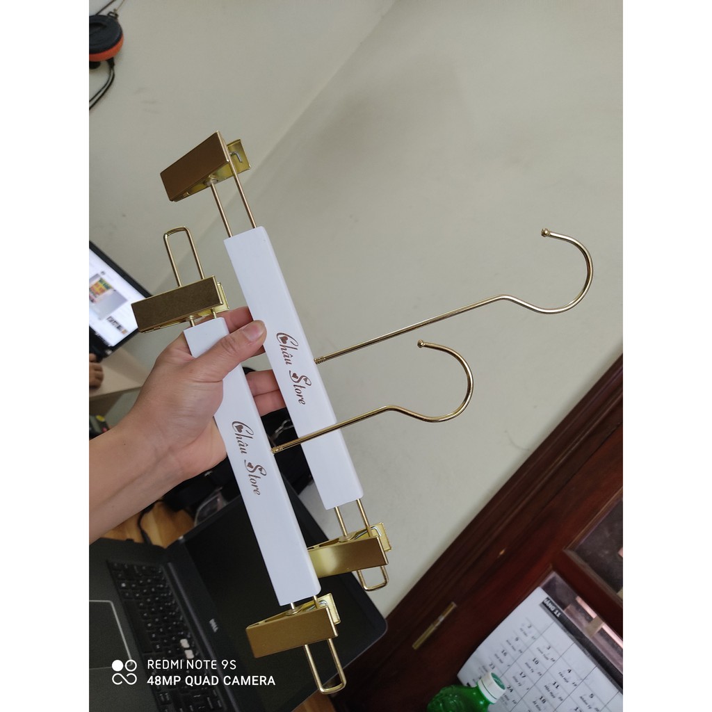 kẹp treo quần áo, chân vay màu trắng đầu kẹp vàng, đầu móc xoay 360