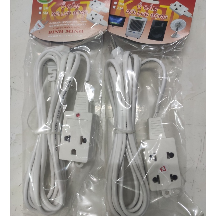 Ổ cắm nối lưu động dài 5m 3m, 1 mặt là 2 ổ cắm 2 chấu , mặt còn lại 1 ổ cắm 3 chấuThông tin sản phảm :