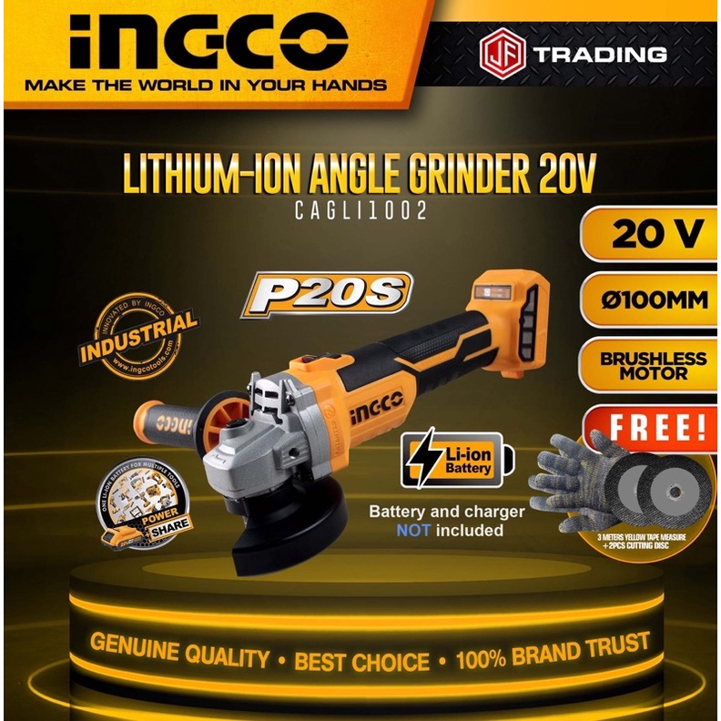 Nhà cửa & Đời sống > Dụng cụ & Thiết bị tiện ích > Dụng cụ > Cưa, máy cắt & máy mài || CAGLI1002 Body mài góc dùng pin Lithium 20V INGCO (Chưa bao gồm pin xạc)Còn hàng