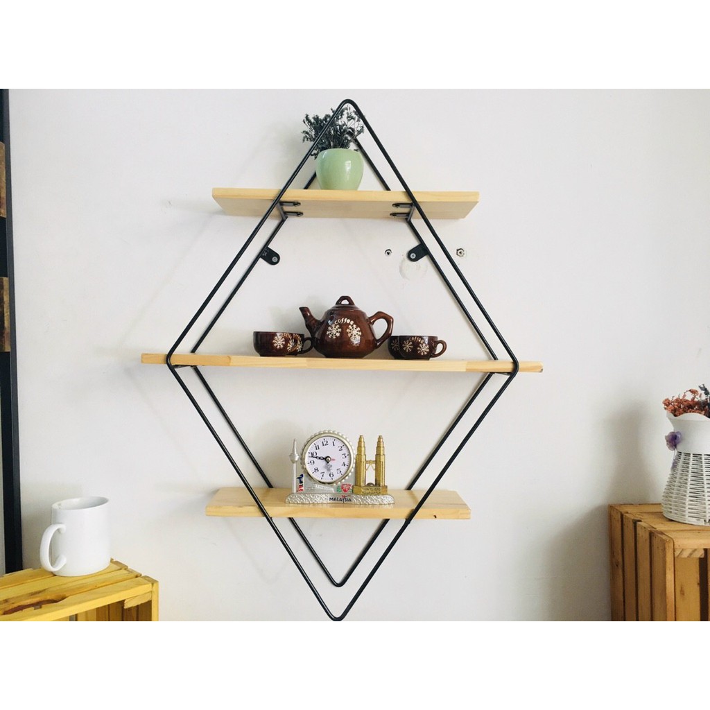 Nhà cửa & Đời sống > Nội thất > Kệ & Giá || Tổng Kệ Treo Tường hình thoi HPKTT 01 - kệ khung sắt hình thoi đượt gỗ thôngCòn hàng