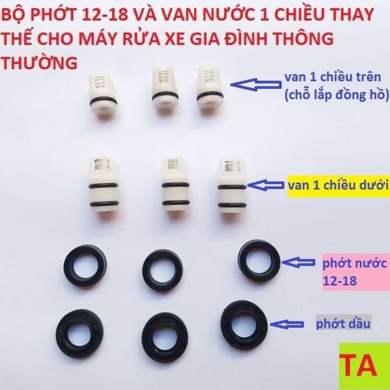 Bộ phớt, van 1 chiều máy rửa xe mini cao áp dùng phớt 12-20, 12 chiếc