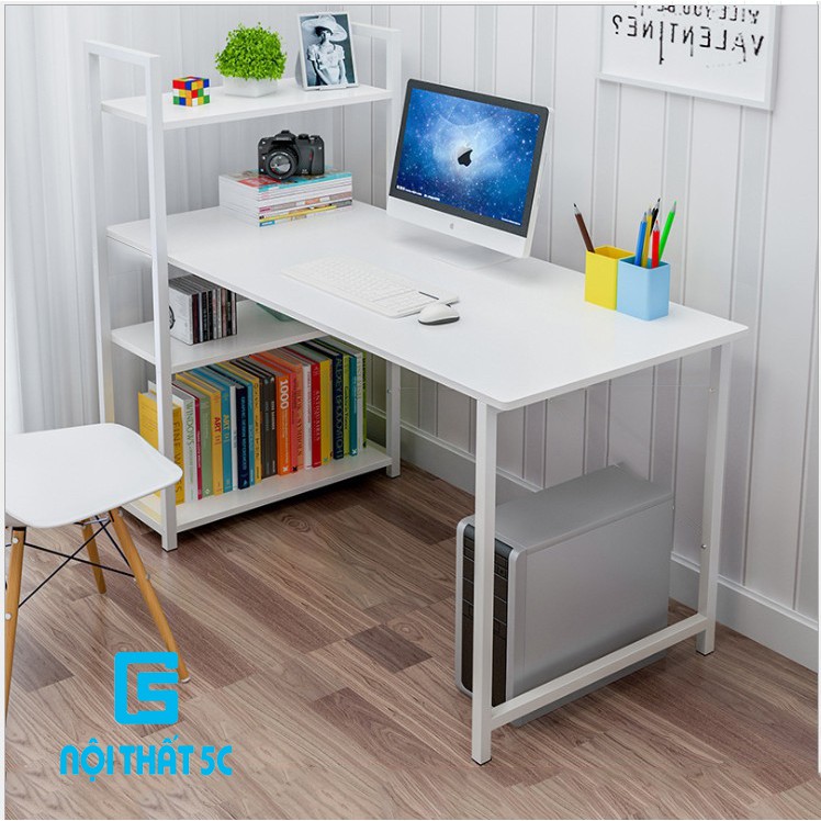Mẫu bàn làm việc kết hợp giá sách thông minh, lắp ráp dễ sử dụng. Bàn phù hợp với mọi nhu cầu bàn làm việc và bàn học tập cơ bản cho mọi gia đình, cá nhân.Kích thước:100cmx40cmx75cm và 80cmx40cmx75cm (Dài x Rộng x Cao)