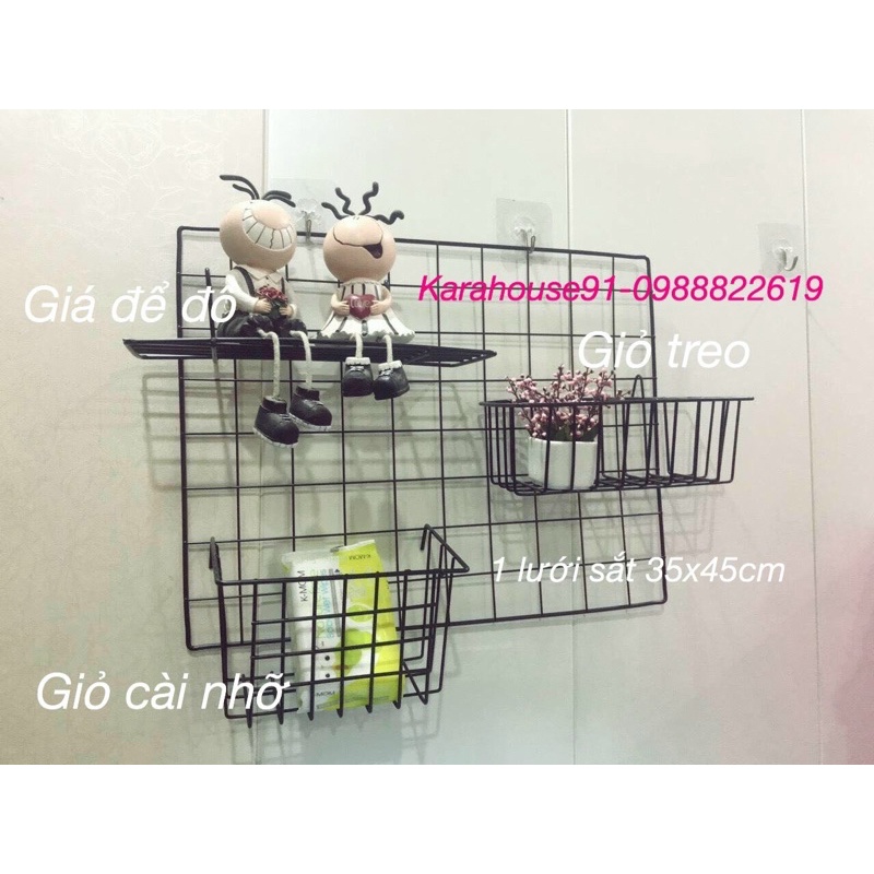 Giỏ cài lưới sắt, giá treo khung lưới sắt decor trang trí