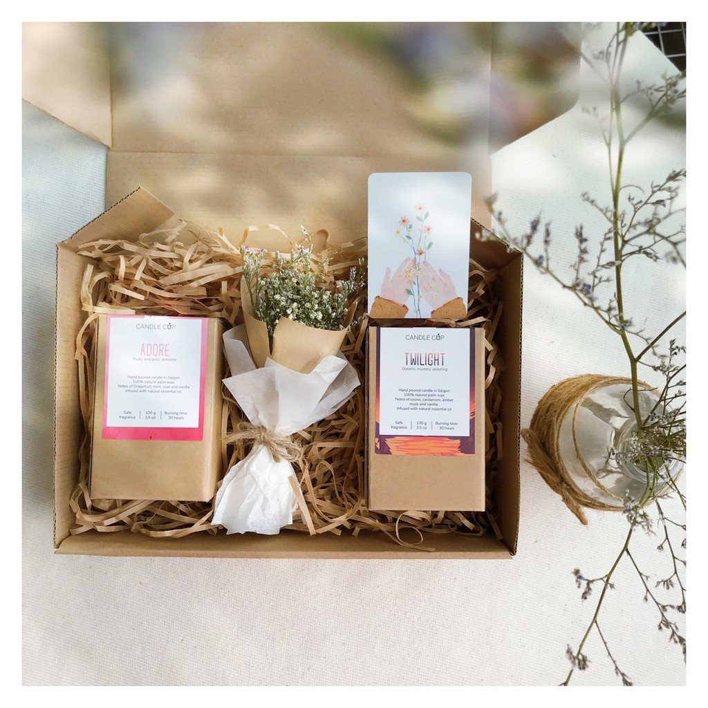 Lưu ý: Nếu bạn chọn phân loại Nến 100gr thì chỉ có hộp giấy đựng cốc nến, không có gói quà, bạn nghen!