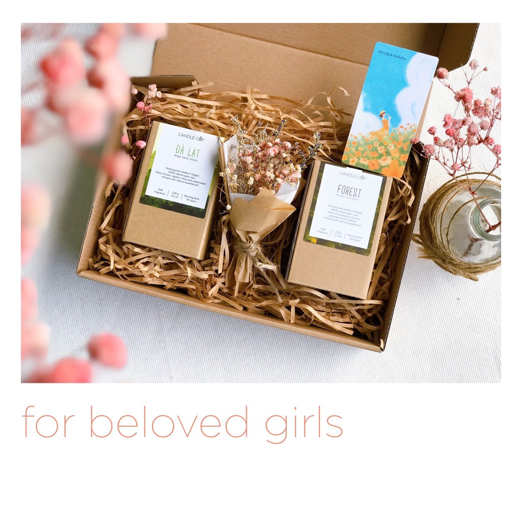 🌻Set quà 2: gồm 02 nến (hương tự chọn) + 01 hoa + thiệp + hộp giấy nhãn có thiết kế đồng bộ với thiệp