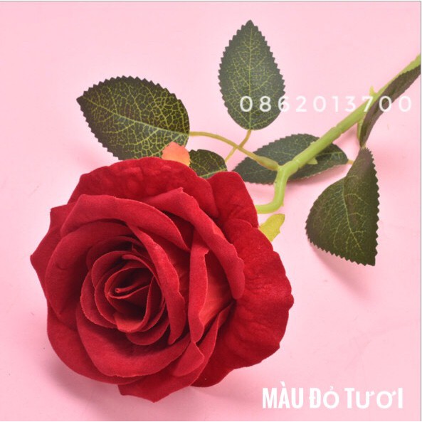 Hoa giả - Hoa Hồng Nhung Lucas 1 bông 65cm trang trí bền, đẹp, ảnh thật