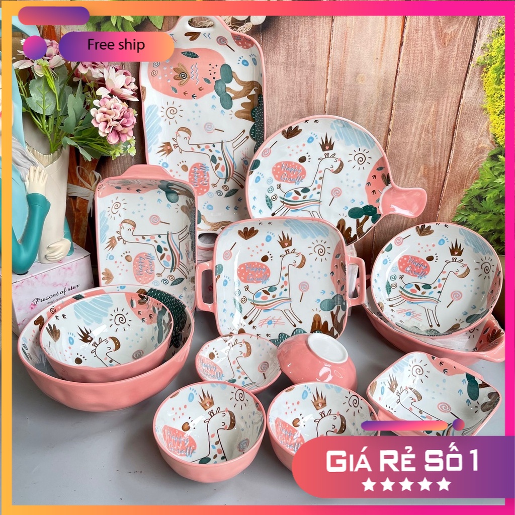 Nhà cửa & Đời sống > Bộ đồ bàn ăn > Dĩa || Bộ Chén Dĩa Sứ Bát Ăn Cơm Đĩa Sứ Dễ Thương Cute Bát Đĩa Hươu Hồng Decor Cao Cấp S79Còn hàng