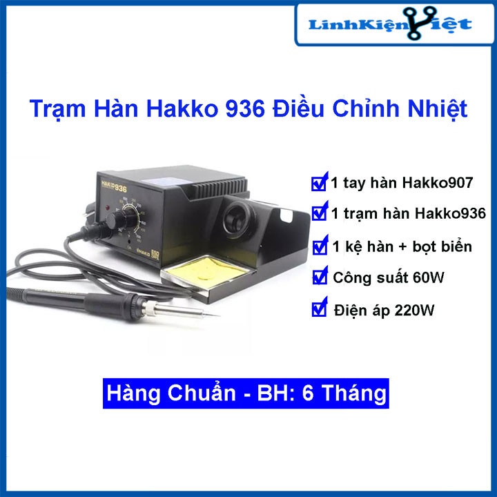 1. Thông tin về sản phẩm :- Máy hàn hakko 936 là một trong những máy hàn được ưa chuộng nhất trên thị trường hiện nay, máy được sử dụngphổ biến trong các cửa hàng sửa chữa điện tử, các nhà máy...