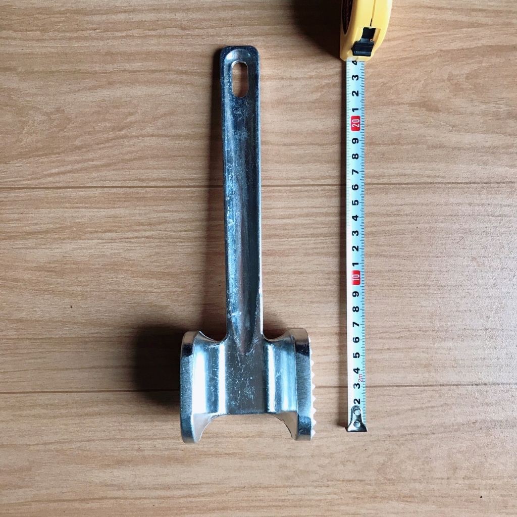 ✅ Dụng cụ dập thịt, dập tỏi với kích thước dài (25cm) và đầu búa to nên chỉ cần dùng lực đập nhẹ là đã có thể làm nát hành tỏi hoặc làm mềm thịt.