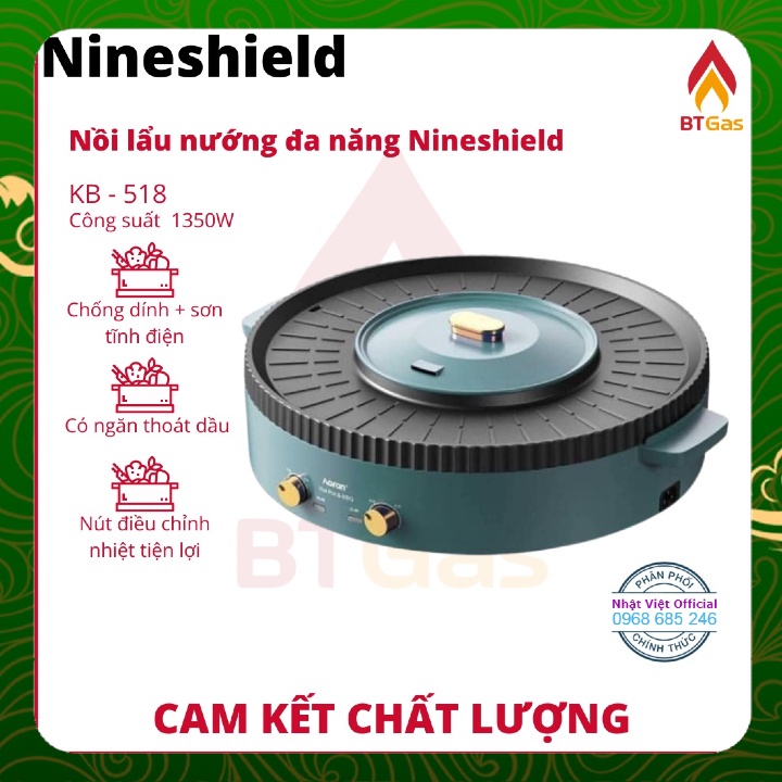 Nồi lẩu nướng đa năng 2 trong 1, nồi lẩu nướng điện Nineshield KB-518✔️ Kích thước lớn, khác biệt so với các loại nhỏ trên thị trường;