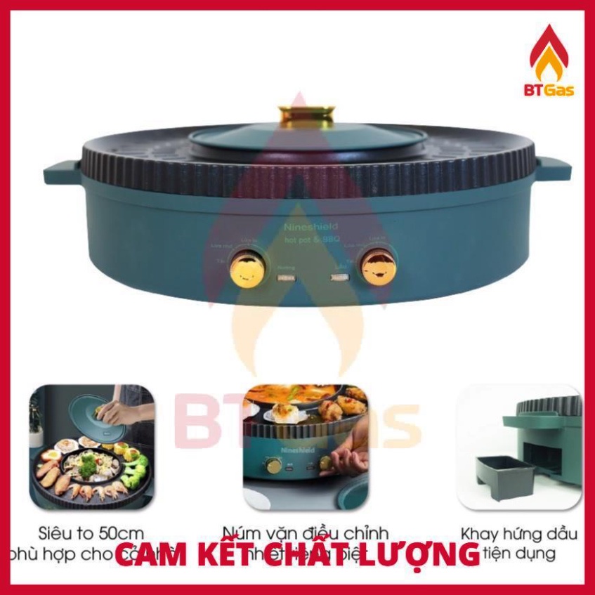 Nồi lẩu nướng đa năng 2 trong 1 dùng điện Nineshield 2 in 1 loại to 51cm