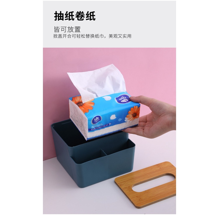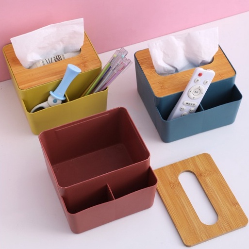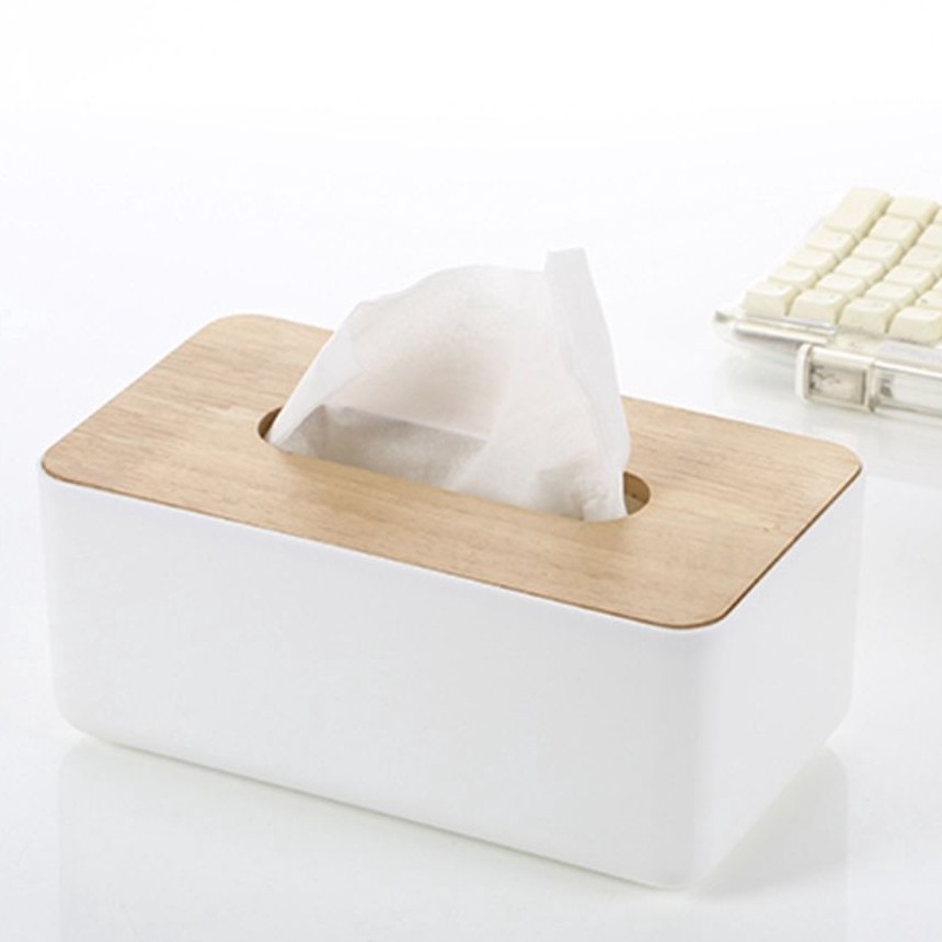 - Hộp đựng khăn giấy bằng nhựa chữ nhật nắp gỗ ép.