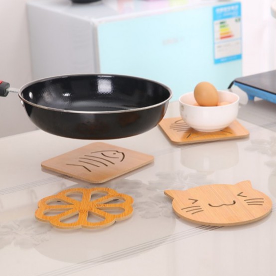1. Sản phẩm dùng để lót xoong, nồi, chảo, bát đĩa, cốc chén … được làm bằng gỗ giúp cách nhiệt giữa xoong, nồi và mặt bàn hay tủ đựng thức ăn hiệu quả.