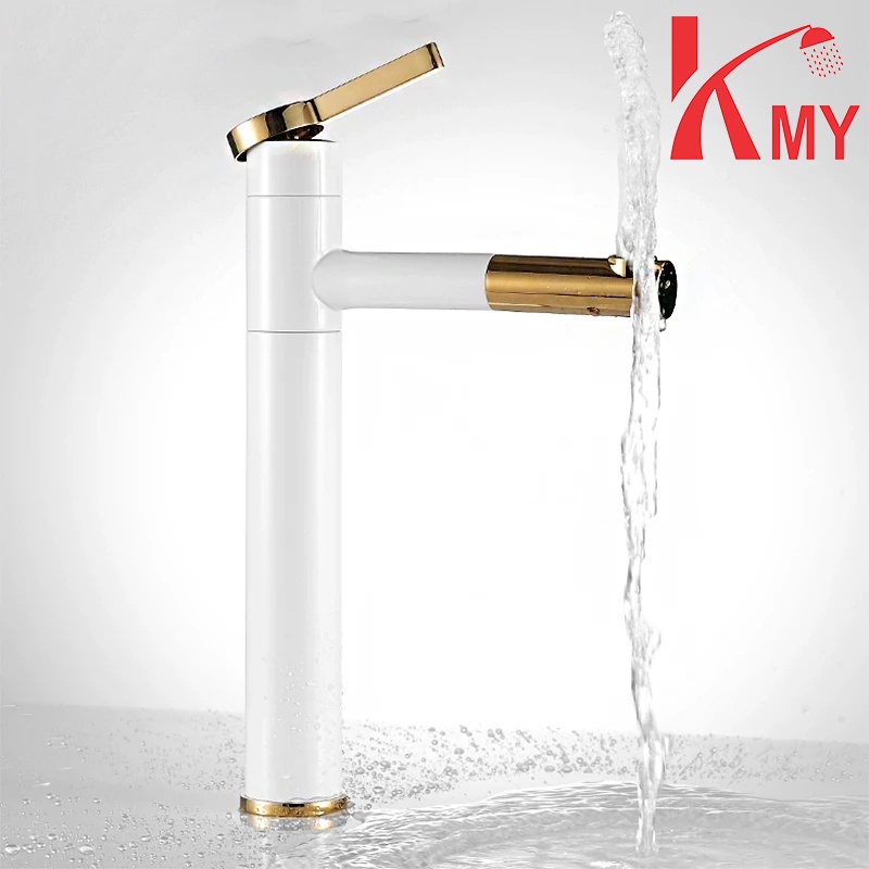 Vòi lavabo sơn tĩnh điện trắng cao 30 cm, đầu vòi xoay 360 độ KMY