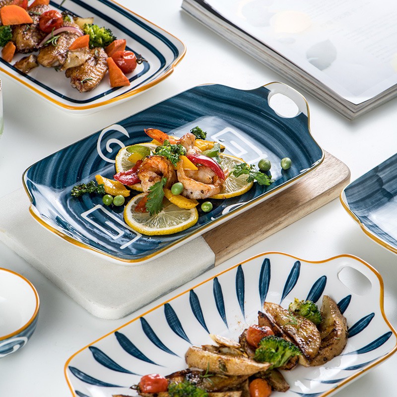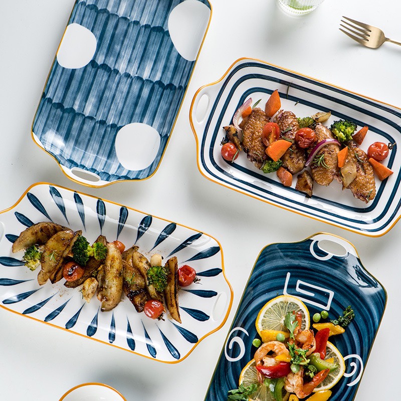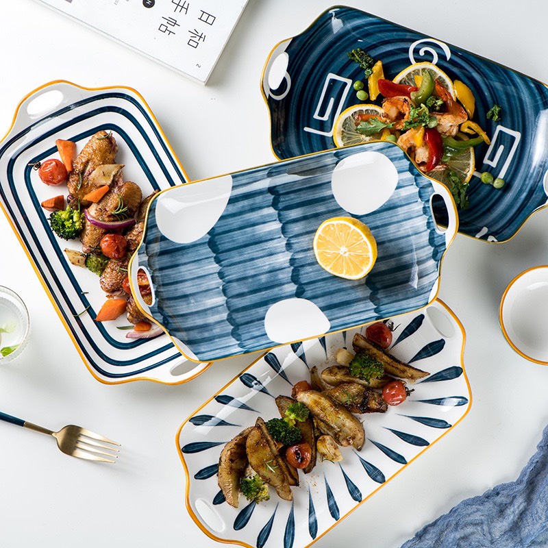 Nhà cửa & Đời sống > Bộ đồ bàn ăn > Dĩa || S55 ĐĨA CHỮ NHẬT 2 TAI VIỀN VÀNG PHONG CÁCH NHẬT BẢNCòn hàng