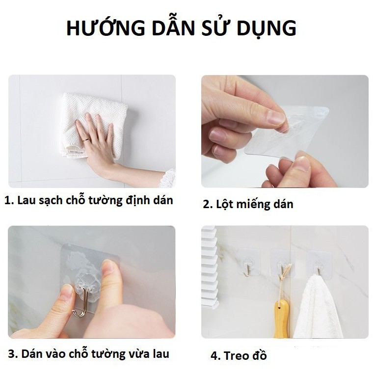 Giới thiệu Combo 10 Móc dán tường trong suốt chịu lực cực tốt, Móc treo đồ đa năng