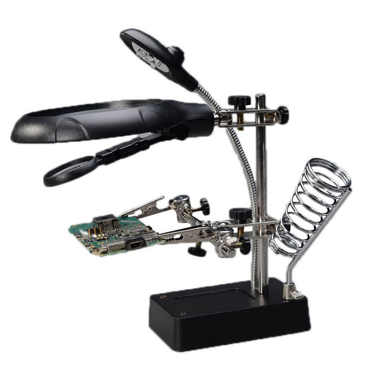 Kính Lúp Soi Kẹp Hàn Mạch Điện Tử Có Đèn Led Và Cáp Sạc hàng chất lượng caoBàn kẹp kính lúp đa năng có đèn led ( vừa pin vừa cắm sạc )