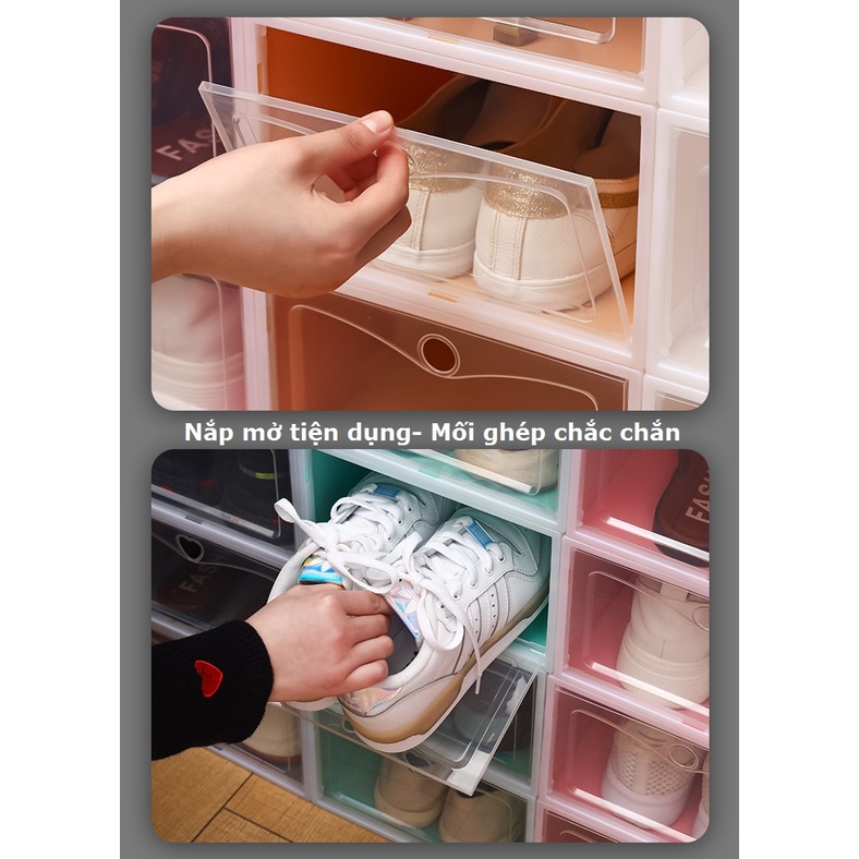 Combo 5 Hộp Đựng Giày Thông Minh Nắp Nhựa Cứng Lắp Ráp Tặng Gói Hút Ẩm Màu Trắng