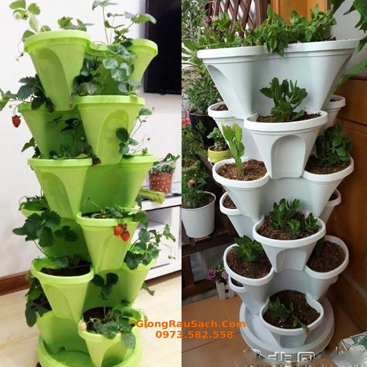 Tháp Trồng Rau Trồng Hoa Trồng Dâu Tây Hữu Cơ Thông Minh Xếp Tầng Đẹp Giá Rẻ