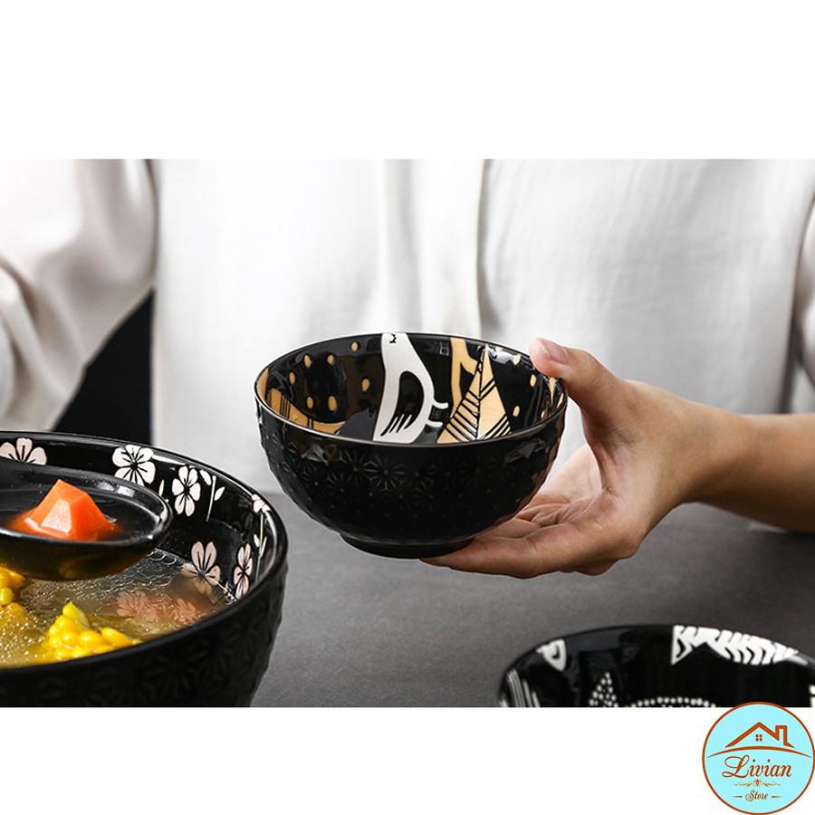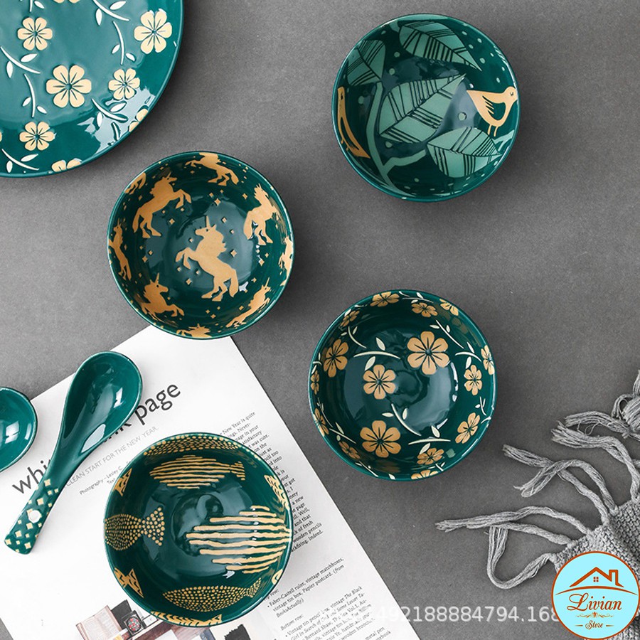 Nhà cửa & Đời sống > Bộ đồ bàn ăn > Tô || Bát ăn cơm, bát ăn dặm bằng sứ có vân chống trơn họa tiết hoa lá, ngựa và cá cực xinhCòn hàng