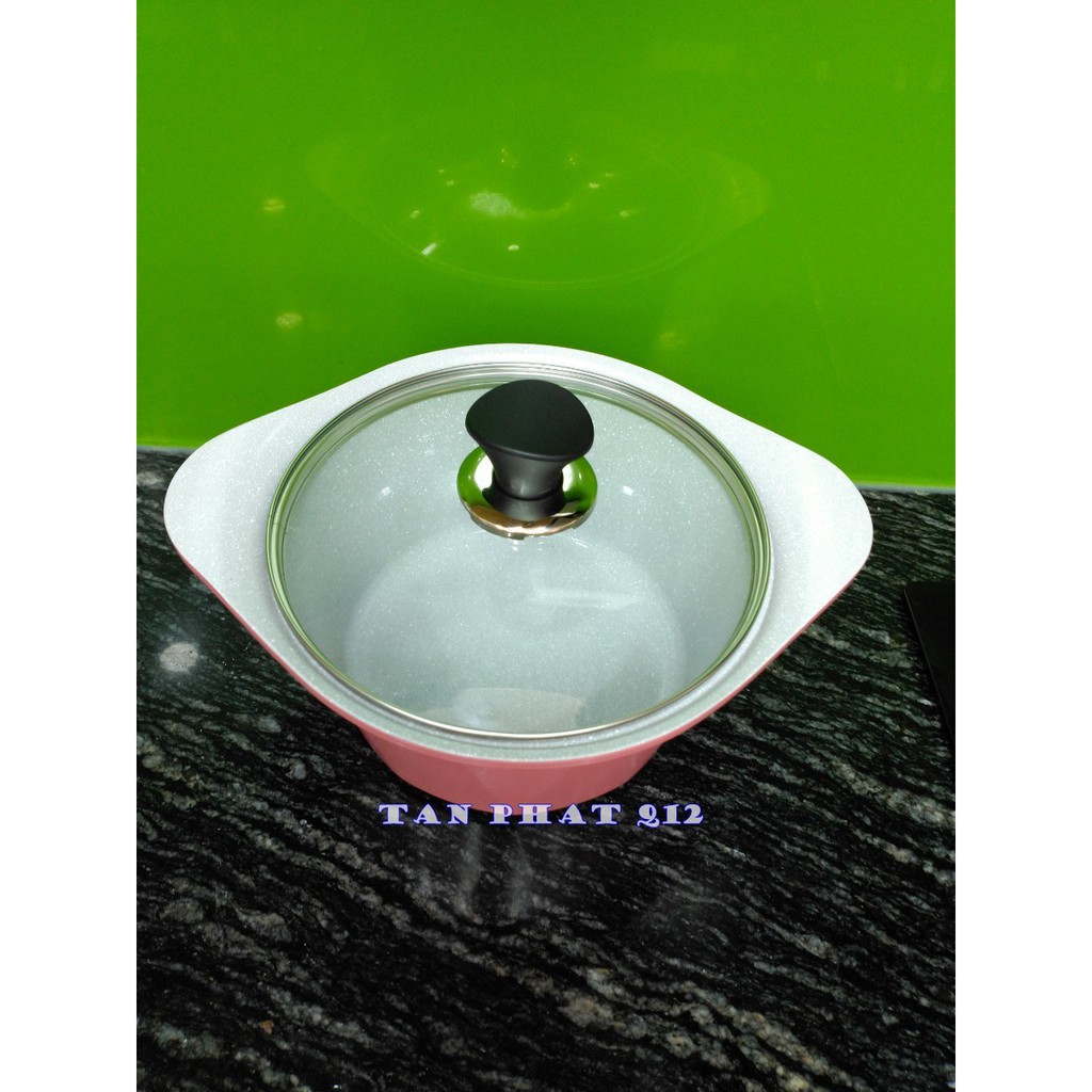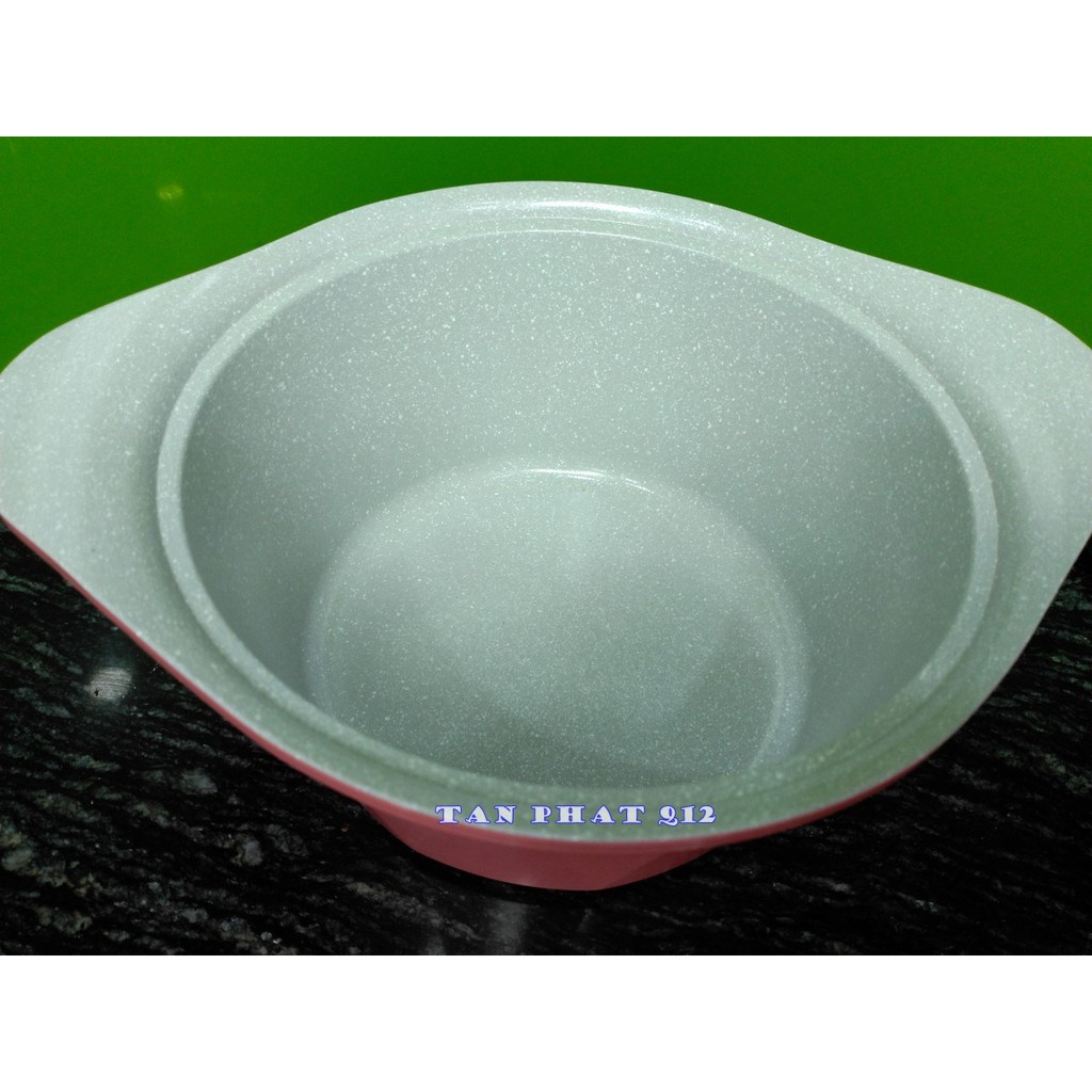 NỒI ĐÚC VÂN ĐÁ ĐÁY TỪ, có chống dính GREEN COOK 16/20/24CM (MÀU HỒNG)
