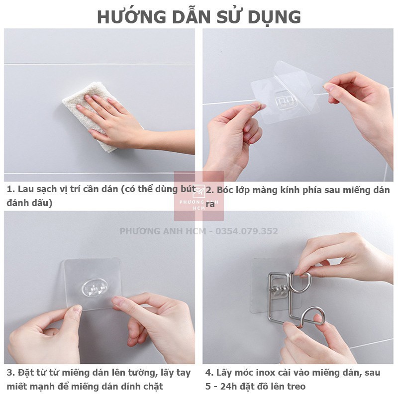- Chất liệu: Inox + Miếng dính nhựa PE siêu dính