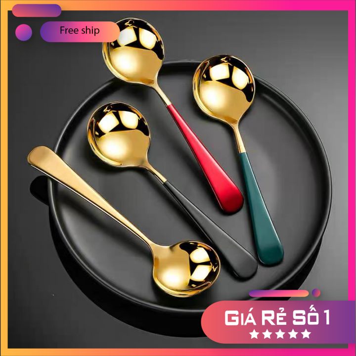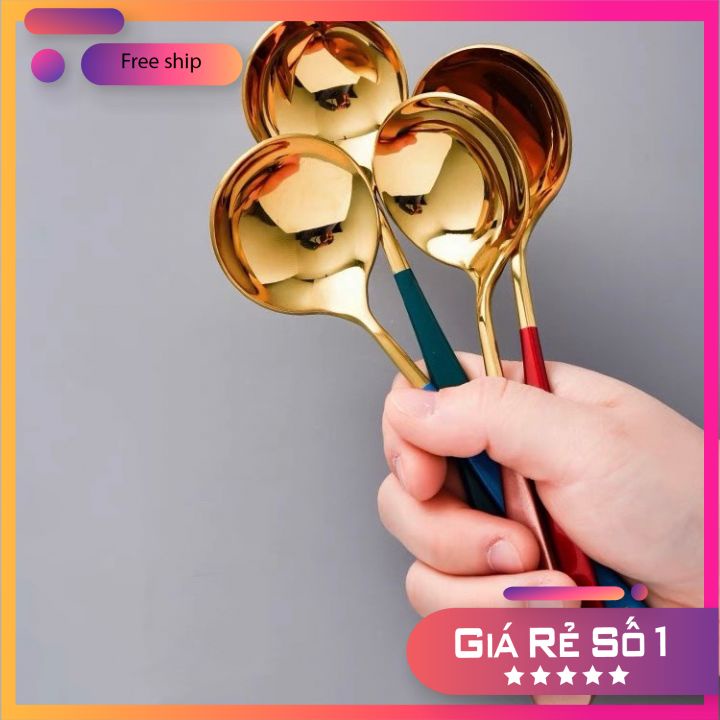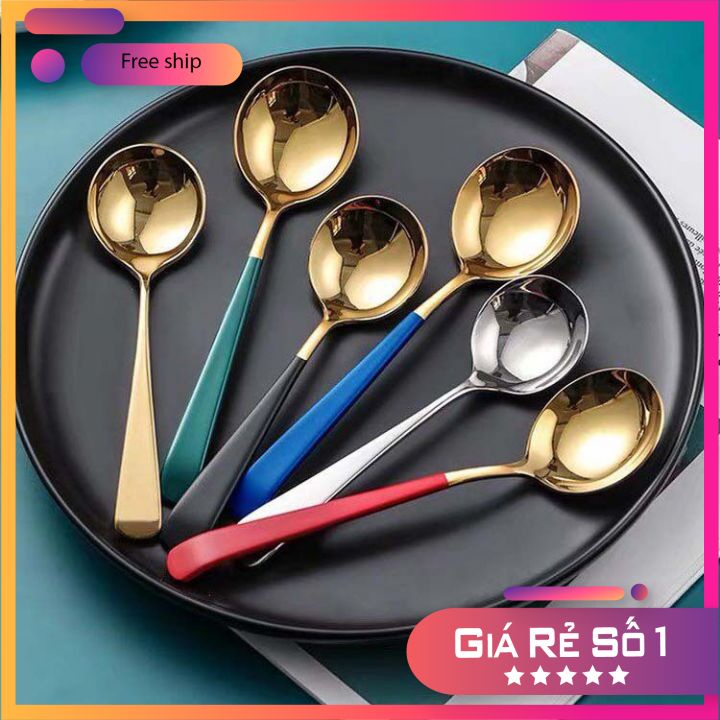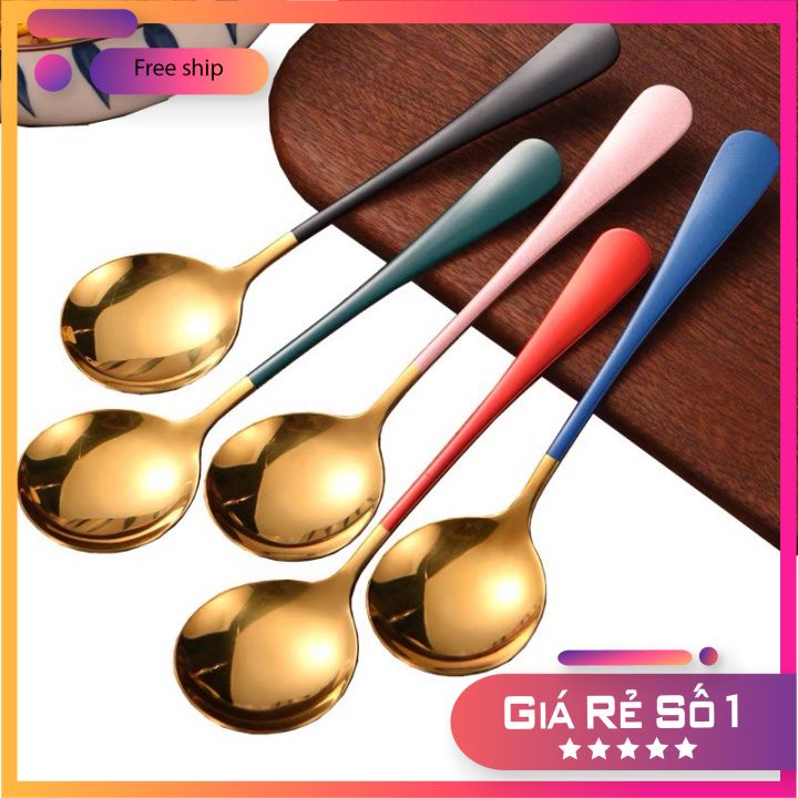 Giới thiệu Thìa Ăn Cơm. muỗng ăn Bằng Inox Mạ Vàng Cán Dài Nhiều Mầu