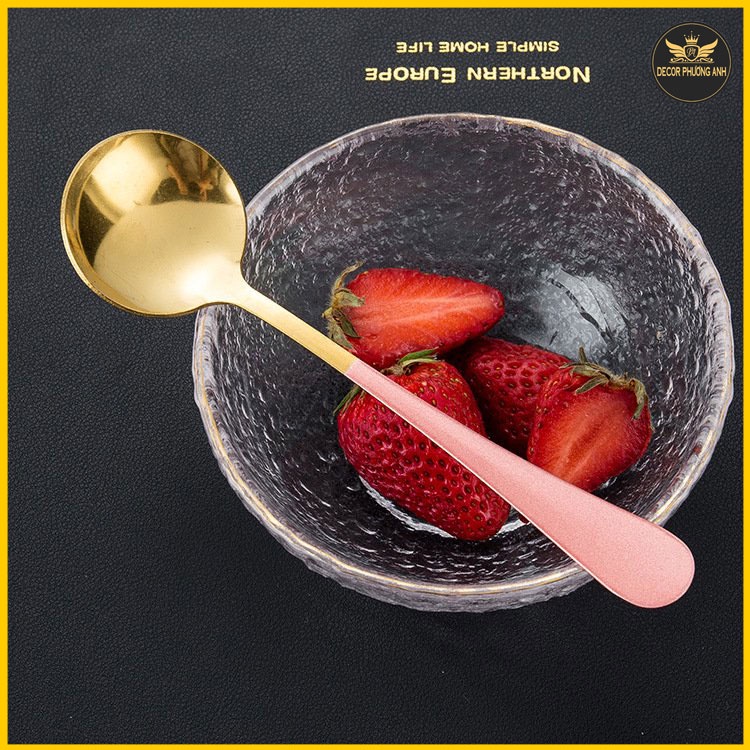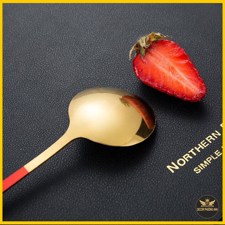 • Màu sắc: Mạ vàng và cán thìa có 5 màu ( hồng, đen, xanh dương, đỏ, xanh lục)