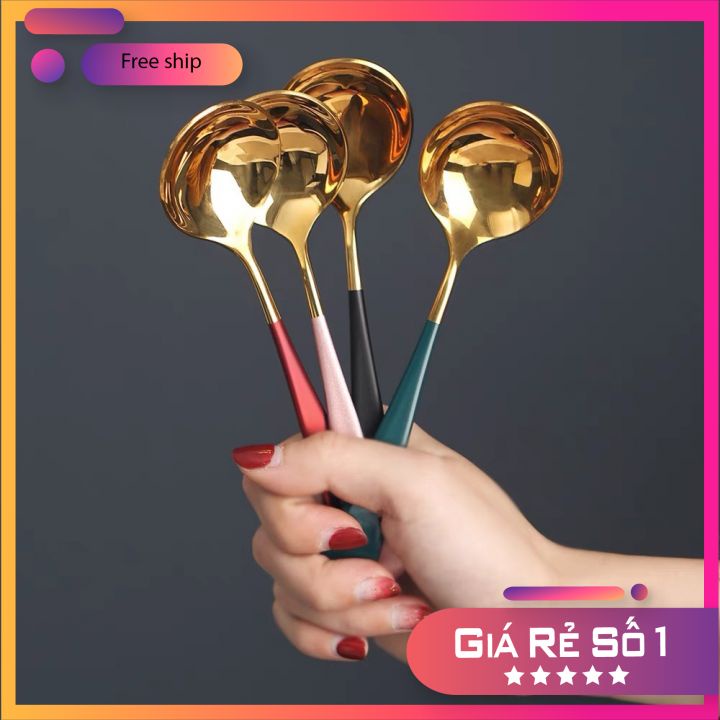 Nhà cửa & Đời sống > Bộ đồ bàn ăn > Dĩa || Thìa Ăn Cơm. muỗng ăn Bằng Inox Mạ Vàng Cán Dài Nhiều MầuCòn hàng