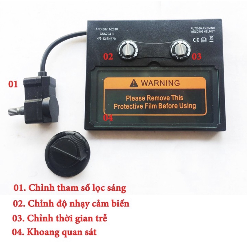 Nón Hàn Điện Tử Cảm Biến Tự Động Điều Chỉnh Ánh Sáng Điều chỉnh được độ sáng tối, nhanh chậm chuyển đổi sáng, độ trễ nhạy sáng để có thể phù hợp với từng cơ mắt mỗi người