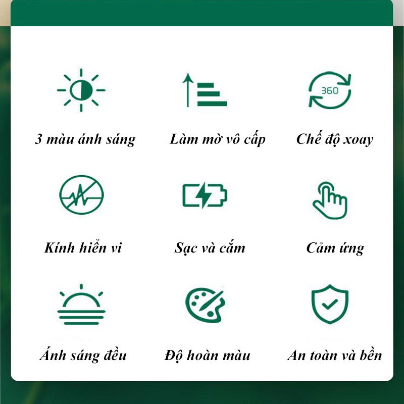 - Không phát xạ tia UV, không gây hại da, không tổn thương niêm mạc.-