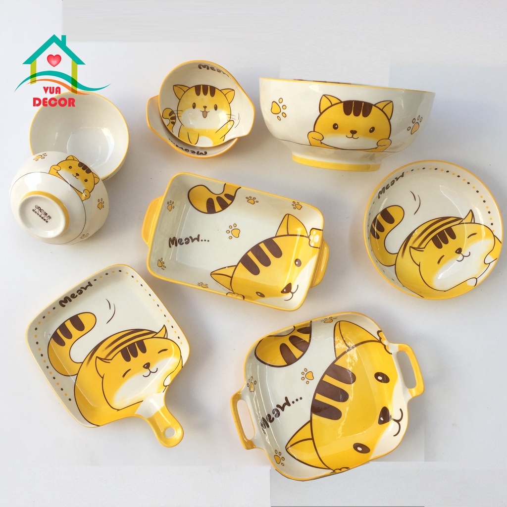 Tên sản phẩm : Set Bát Đĩa 😽 Mèo Vàng 😽Bát đĩa ăn cơm ăn mì, decor bàn ăn dễ thương S87- Chất liệu: GỐM SỨ cao cấp