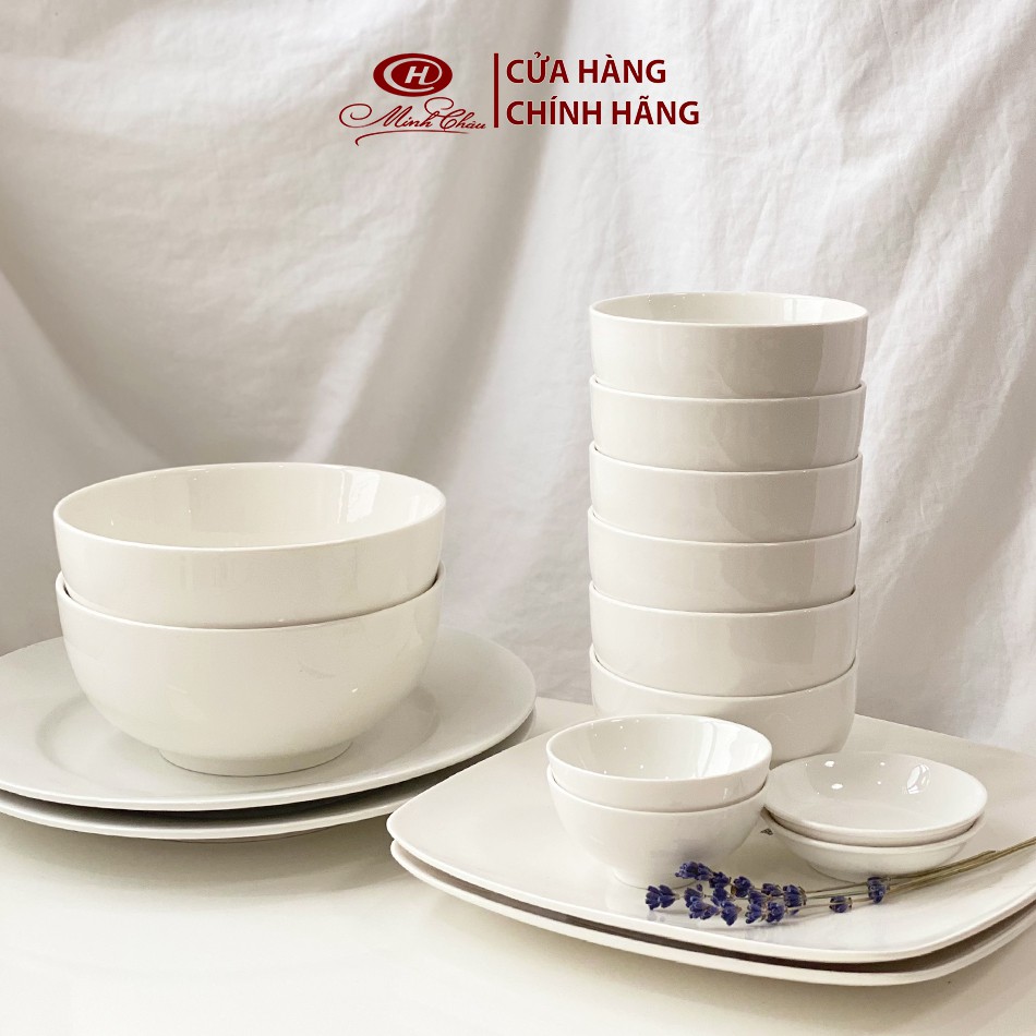 Bộ Bát Đĩa Sứ Trắng Trơn Cỡ Lớn - 16 Món - Sứ Minh Châu