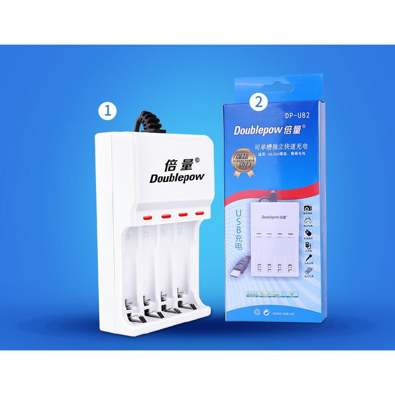 Cameras & Flycam > Phụ kiện máy ảnh > Bộ sạc pin || Bộ sạc pin Doublepow dùng sạc 4 viên pin AA/AAA cổng USB (DP-U82)Còn hàng