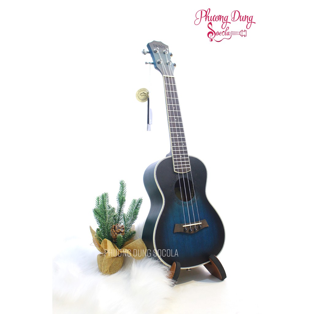 Đàn Ukulele Gỗ Sơn Xanh Đen-Ukboy-Size Concert