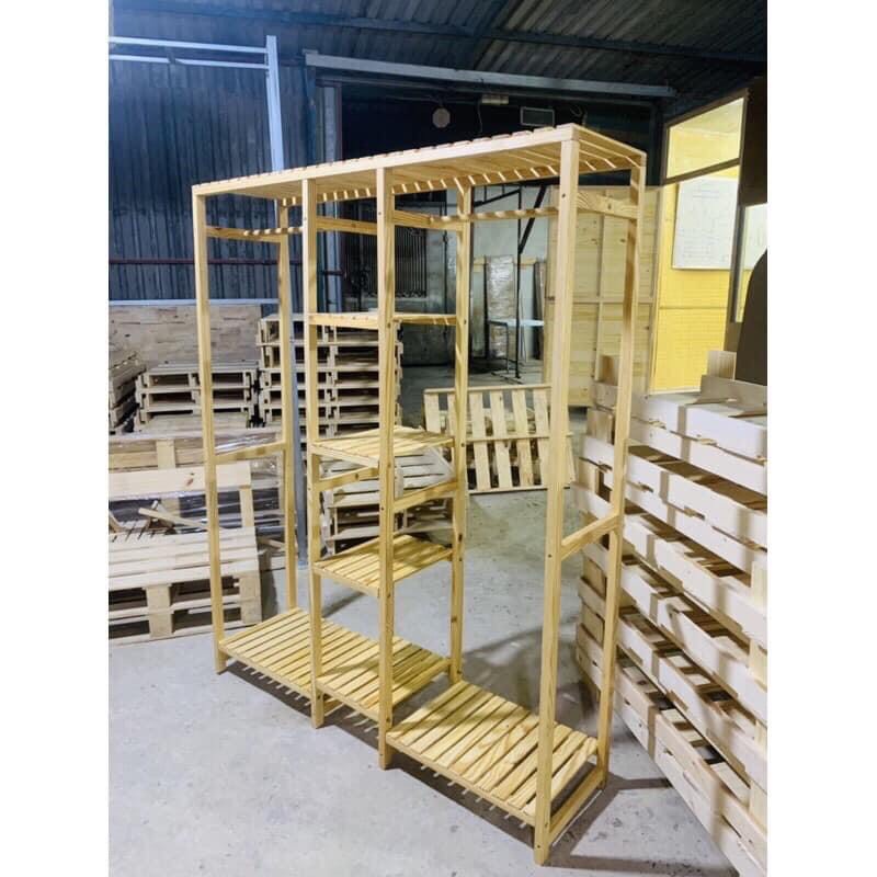 [SALE] Kệ Tủ Lắp Ráp Treo Quần Áo Đôi Gỗ Thông Mỹ Siêu Chịu Lực ( BẢO HÀNH 1 NĂM)