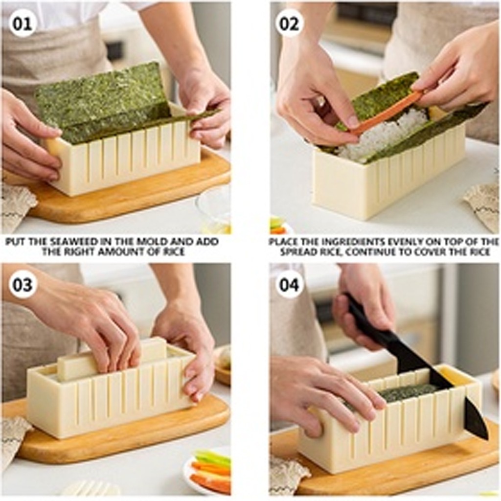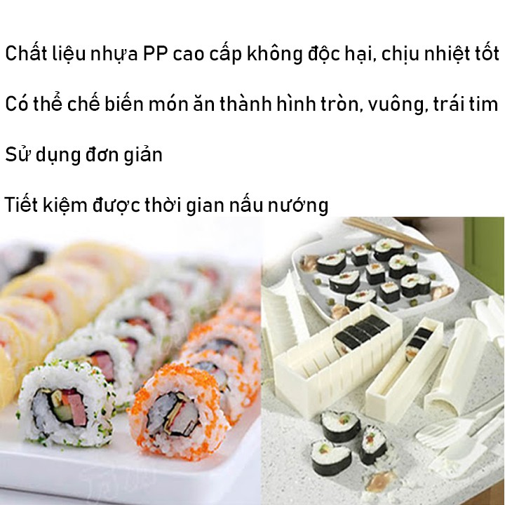 Bộ khuôn làm kimbap với các hình trái tim, vuông, tròn, chữ nhật TR120- Giúp bạn có thể chế biến các món sushi, kimbap, cơm cuộn một cách dễ dàng và đẹp mắt tạo cho bữa ăn của gia đình thêm phần hấp dẫn