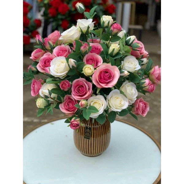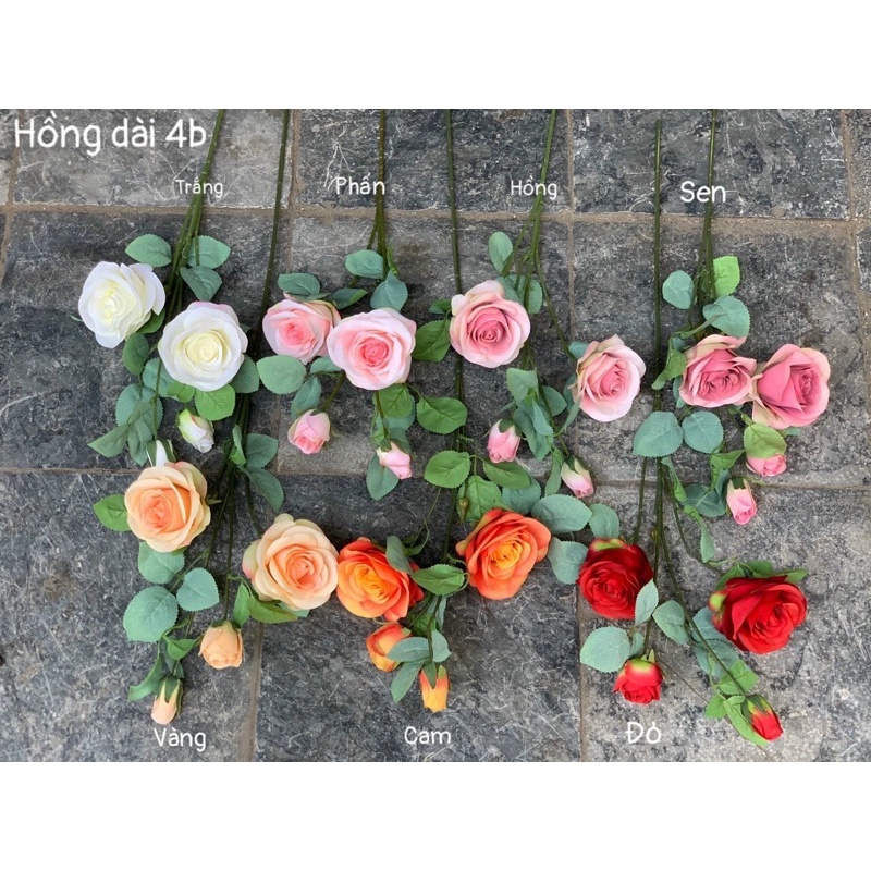 Nhà cửa & Đời sống > Trang trí nhà cửa > Hoa trang trí || Cành hoa hồng lụa 4 bông dài 60cmCòn hàng