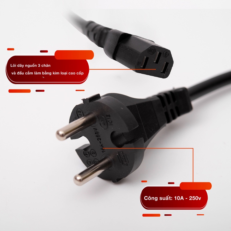 - Lợi ích: Dây nguồn máy tính làm từ nhựa cao cấp độ đàn hồi cao, chắc chắn, chịu nhiệt chống va đập an toàn khi sử dụng.
