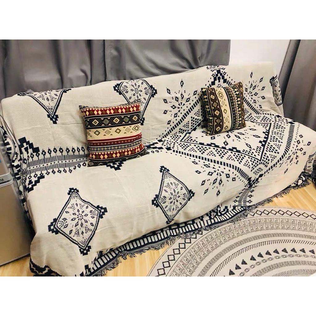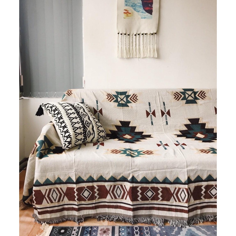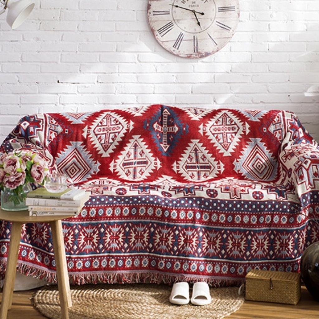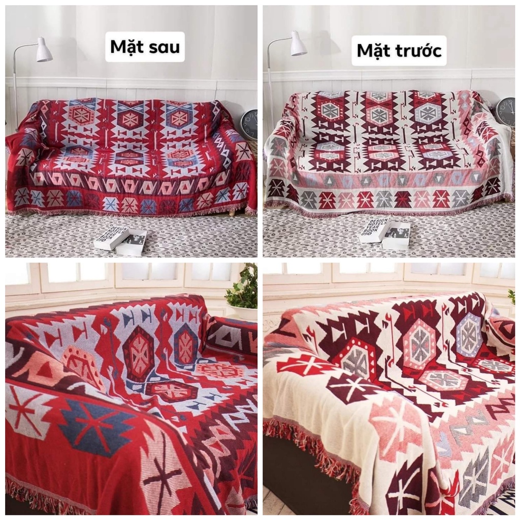 Khăn phủ sofa, Thảm thổ cẩm decor vintage, Thảm sofa, trải sàn sử dụng được 2 mặt