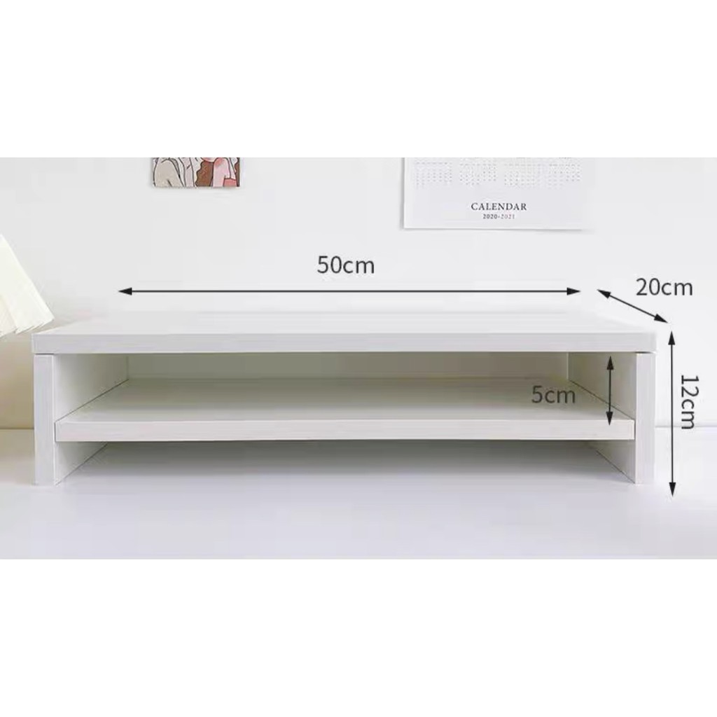 + Kích thước: 🌿Kệ máy tính : Rộng 50cm, Sâu 20cm, Cao 14cm ( Ngăn đựng: Tầng dưới 4,5cm, Tầng trên 7,5cm)