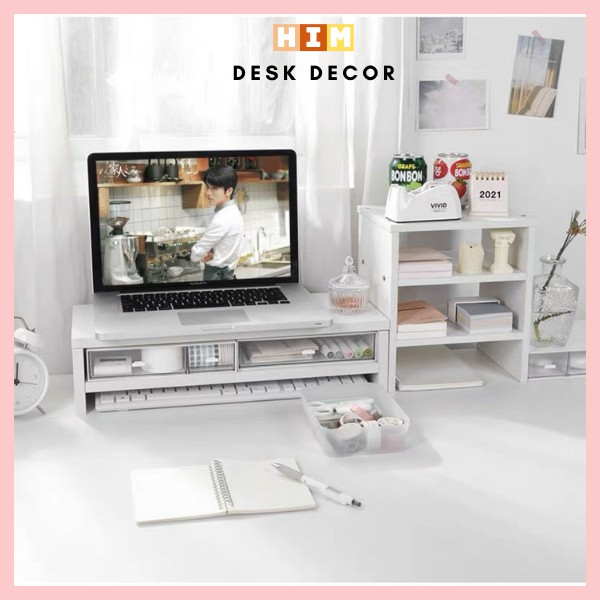 Nhà cửa & Đời sống > Sắp xếp nhà cửa > Kệ sách để bàn || Combo kệ máy tính 2 tầng + Kệ sách 3 tầng màu trắng trang trí decor bàn họcCòn hàng
