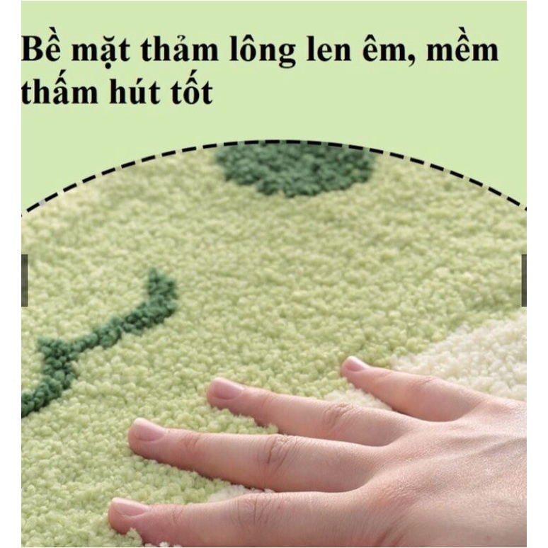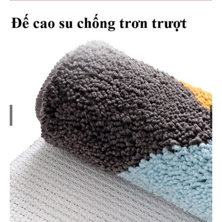 🌷Chất liệu: thảm chùi chân có mặt trên là lớp vải len dày, êm, mềm mịn có khả năng thấm hút nước tốt