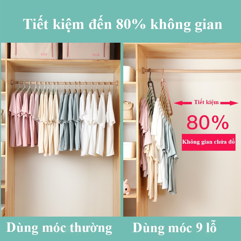 - Tiết kiệm đến 80% diện tích của tủ nhờ vào 9 lỗ tiện lợi trên móc