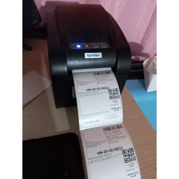 - Loại giấy: giấy in nhiệt có sẵn keo dán